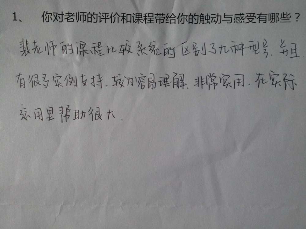 【相学恨晚:同样是九型课,为什么这里让我更受益】 “学过好几次其他老师的九型,发现在裴导的课题上有全新角度、新观点、更深刻...” “我以前对培训都不感兴趣,都是踩着点去课堂,这次九型真的让我有了学习的兴趣,跟以前的自己相比进步很大,每天早早就到...” “关注九芒星公司一年多,虽然未系统学习,但在潜移默化中对我影响很大...” “接触过九型,觉得九芒星的营销做得非常好,被吸引,跟裴老师有过一面之缘,希望自我提升...”