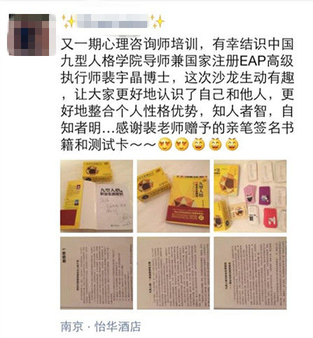 “我比上次理解更透彻了。”“我在上南京大学商学院MBA课,里面最新课程体系中就有九型人格课程。”一位去年就参加过裴老师课程的学员坚持这次一定要再来听听裴老师的九型!