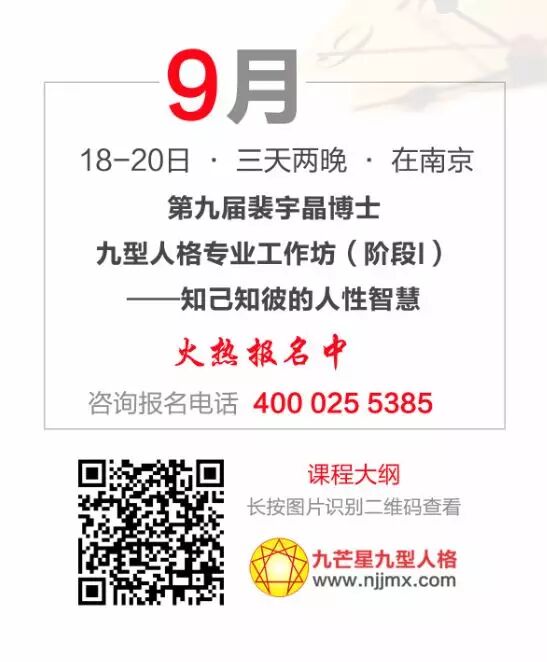 学习九型,很多老师一直盯着“修”,对此我不太同意,我一直在强调“修用一体”,“修”就是透过觉察自我完善,“用”就是发挥优势完成使命。著名九型人格大师苏珊说“我们不仅要对九型人格乐观,还要对九种类型本身乐观”,她反复强调——九型人格绝不是一个描绘人类种种缺陷和问题的病理性地图,而是描绘完整人性的地图!九型人格不仅在指引我们觉察、成长,还在指引我们去发挥人格本来的光辉,践行人格所蕴含的使命!