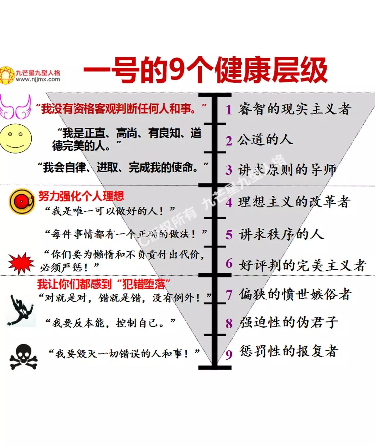 以下是一号完美型的九个健康发展层级: