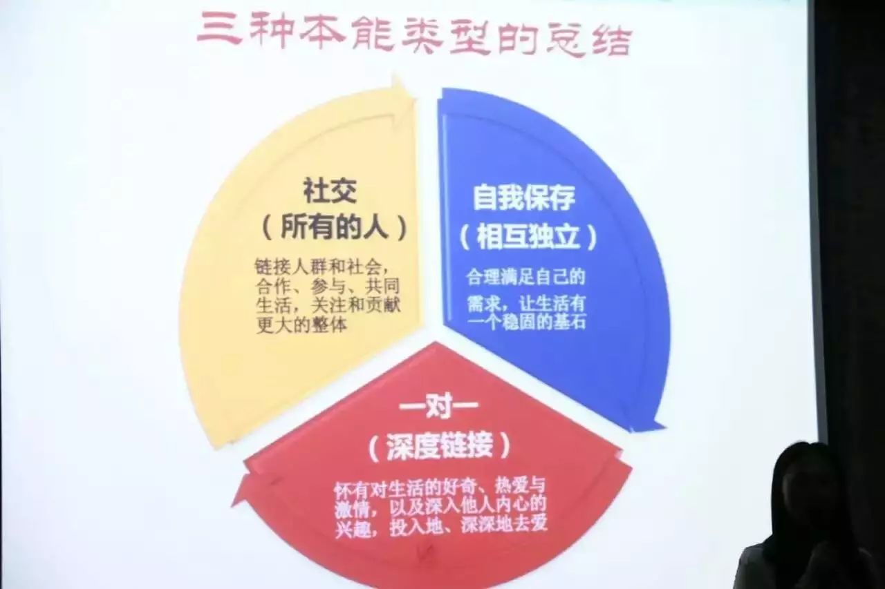 自保/一对一/社交是人类共有的三种本能类型,在每个人的身上,这三种本能类型所占的比例将决定你主要的能量状态和气质类型。