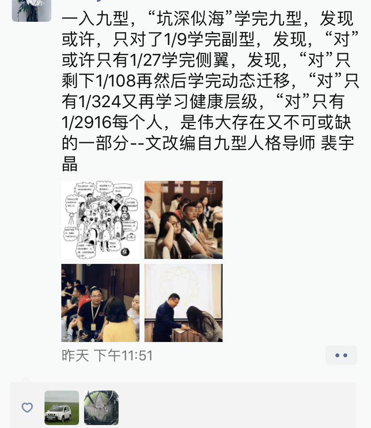 “原来我以为我上的九型课程是比较正宗的,上完裴导的三阶段才发现,这才是正宗的。九芒星的课程改变了我原来对九型的很多看法......”
