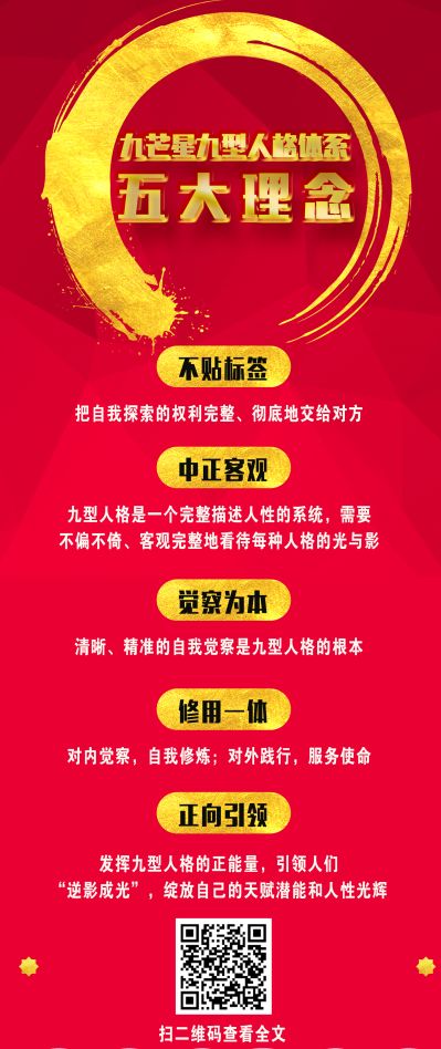 不贴标签、中正客观、觉察为本、修用一体、正向引领,这就是九芒星九型人格,我们所崇尚及践行的九型人格。