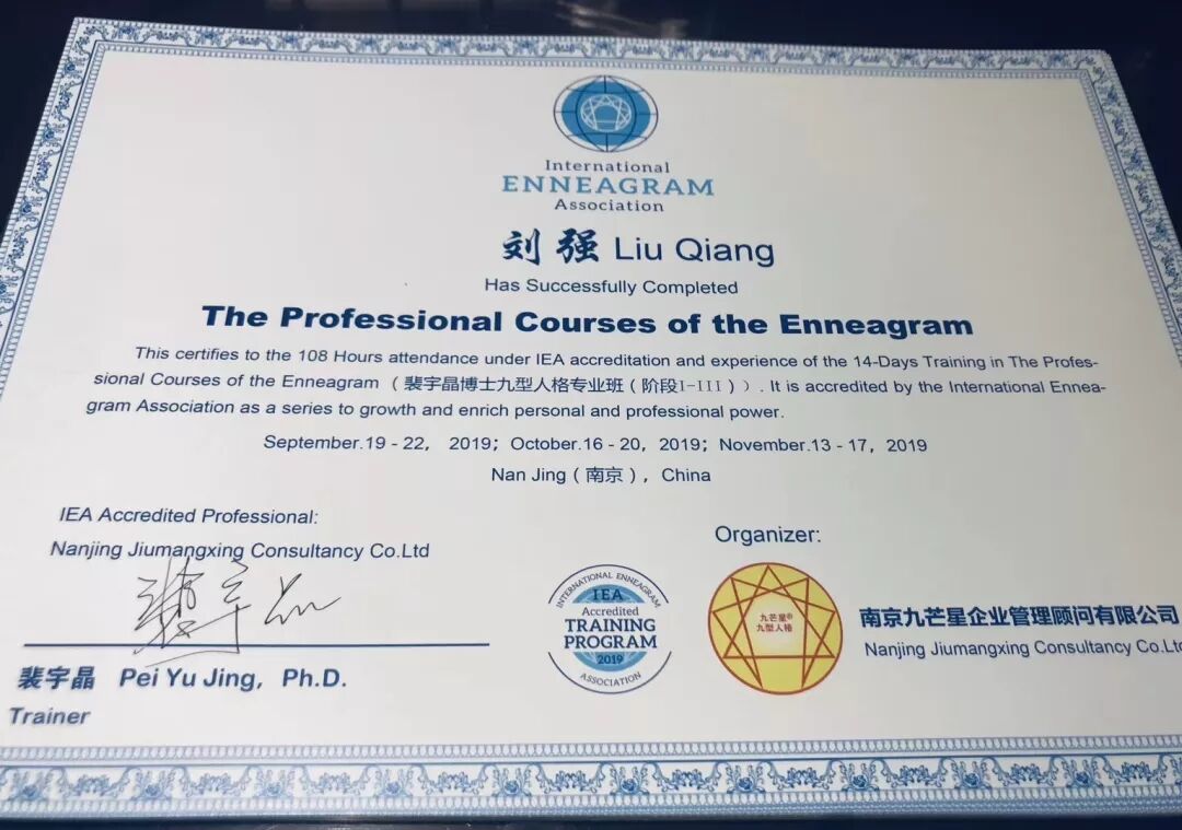 我们毕业了,热烈祝贺三十多位完整走完三阶段的同学获得双证书——九芒星国际九型人格IEA认证课程毕业证书和九芒星专业班毕业证书!![]()