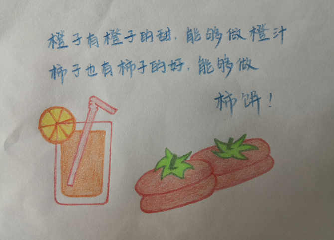 橙子有橙子的甜,能够做橙汁。柿子也有柿子的好,能够做柿饼呀!