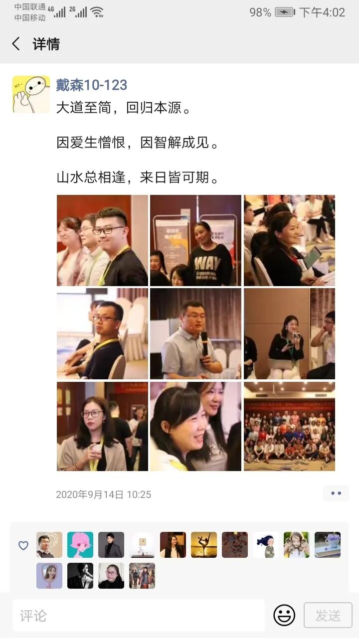现在我明白了,你给我的点赞也是支持一下同事,原来我和大家都一样。