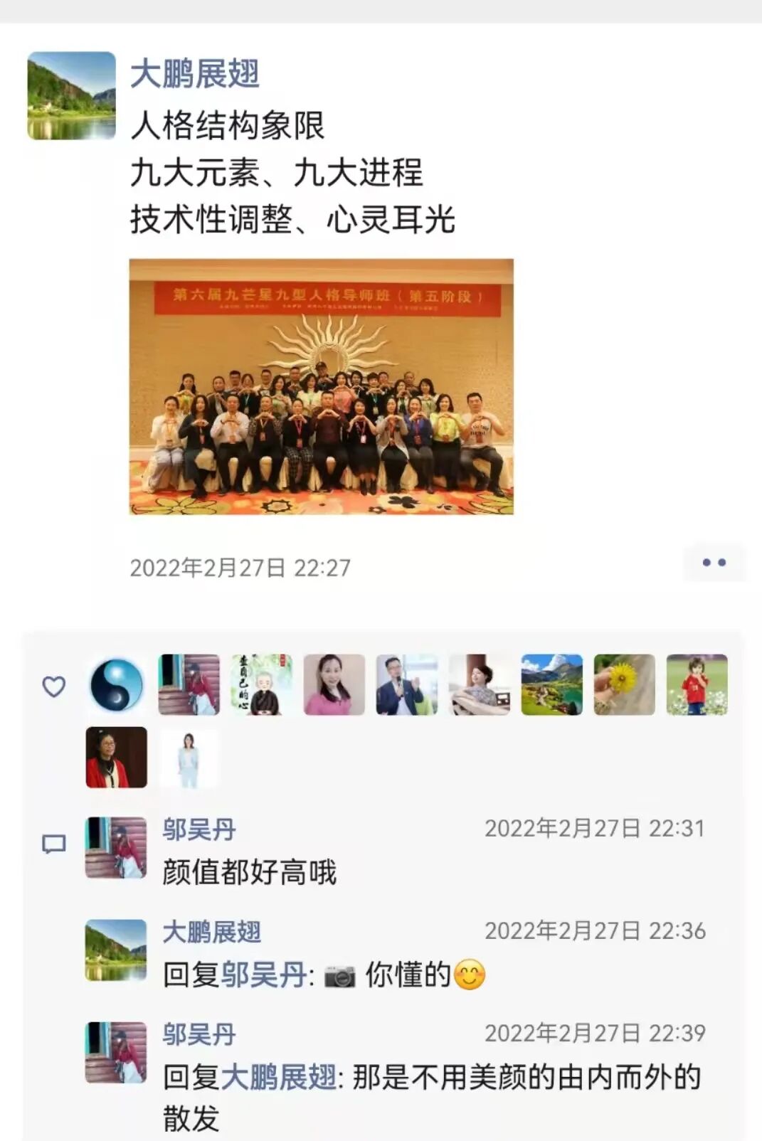 毫不夸张的说,有的成果已经达到了咨询工具和课程开发水平,我相信,这些成果将为九芒星九型人格的应用化普及做出巨大贡献!为导师班的每一位共创者点赞!